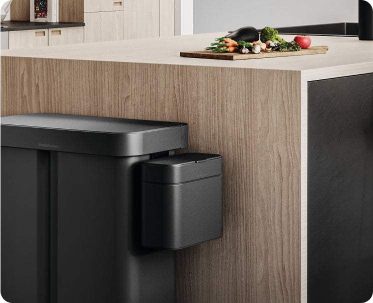 Our compost caddy conveniently docks on the side of Simplehuman bins encouraging you to separate organics from rubbish, making waste management even more efficient.