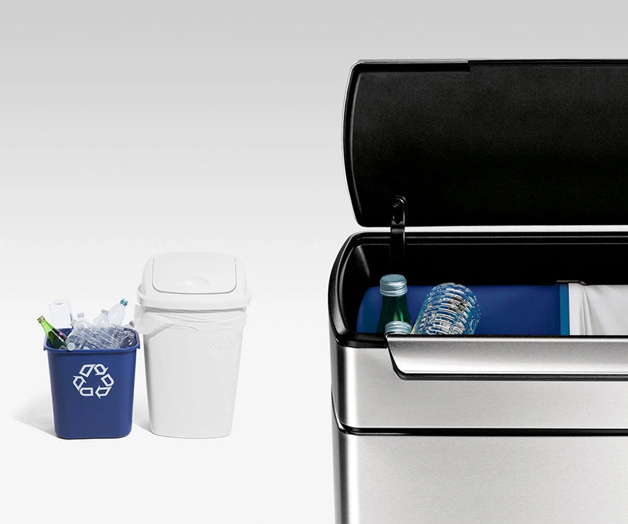 Our dual compartment option neatly sorts your rubbish and recyclables in this dual-bucket bin. One side for rubbish, one side for easy disposal of recyclables. It makes eco-friendliness very space-efficient.