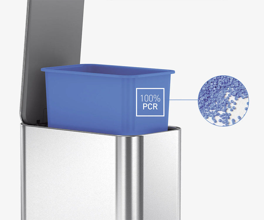Made from 100% post-consumer recycled plastic, the inner bucket lifts out for quick liner changes and easy cleaning.