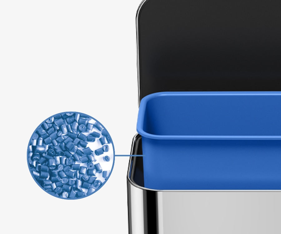 Made from 100% post-consumer recycled plastic, the inner bucket lifts out for quicker liner changes and easy cleaning.