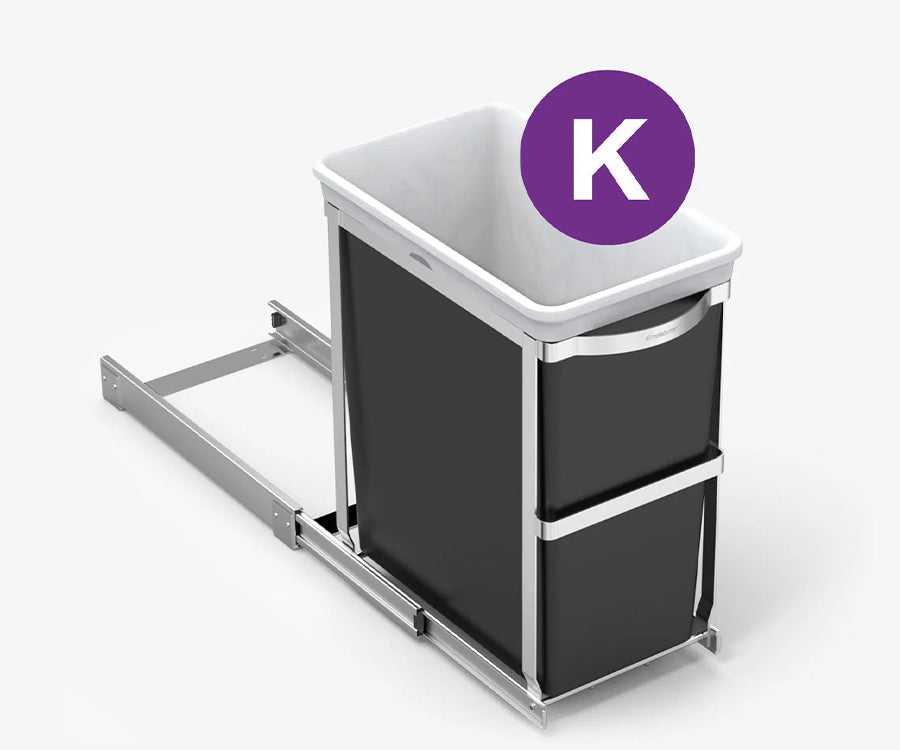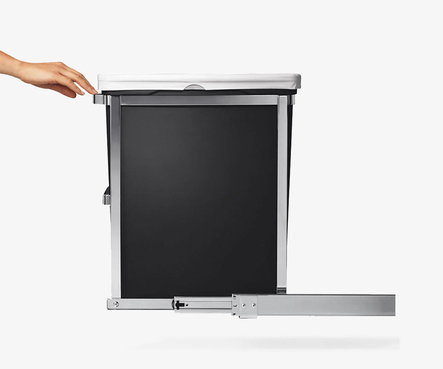 Our pull-out bin is engineered for years of use. This rubbish bin has a tough all-steel frame and glides fully out of the cabinet on smooth commercial-grade ball-bearing tracks for quick and easy access.